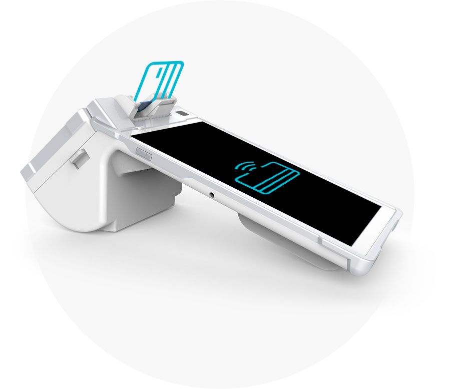 An EMV chip card, NFC contactless, and magstripe reader.